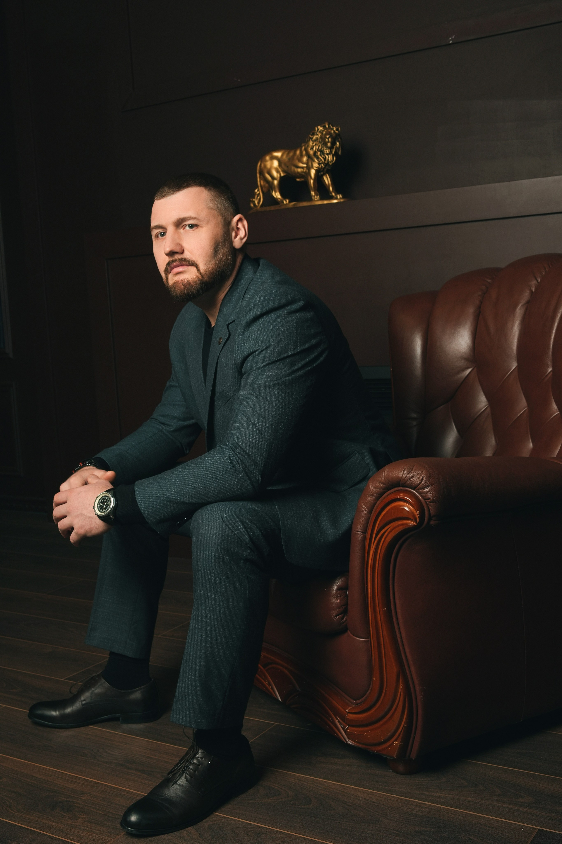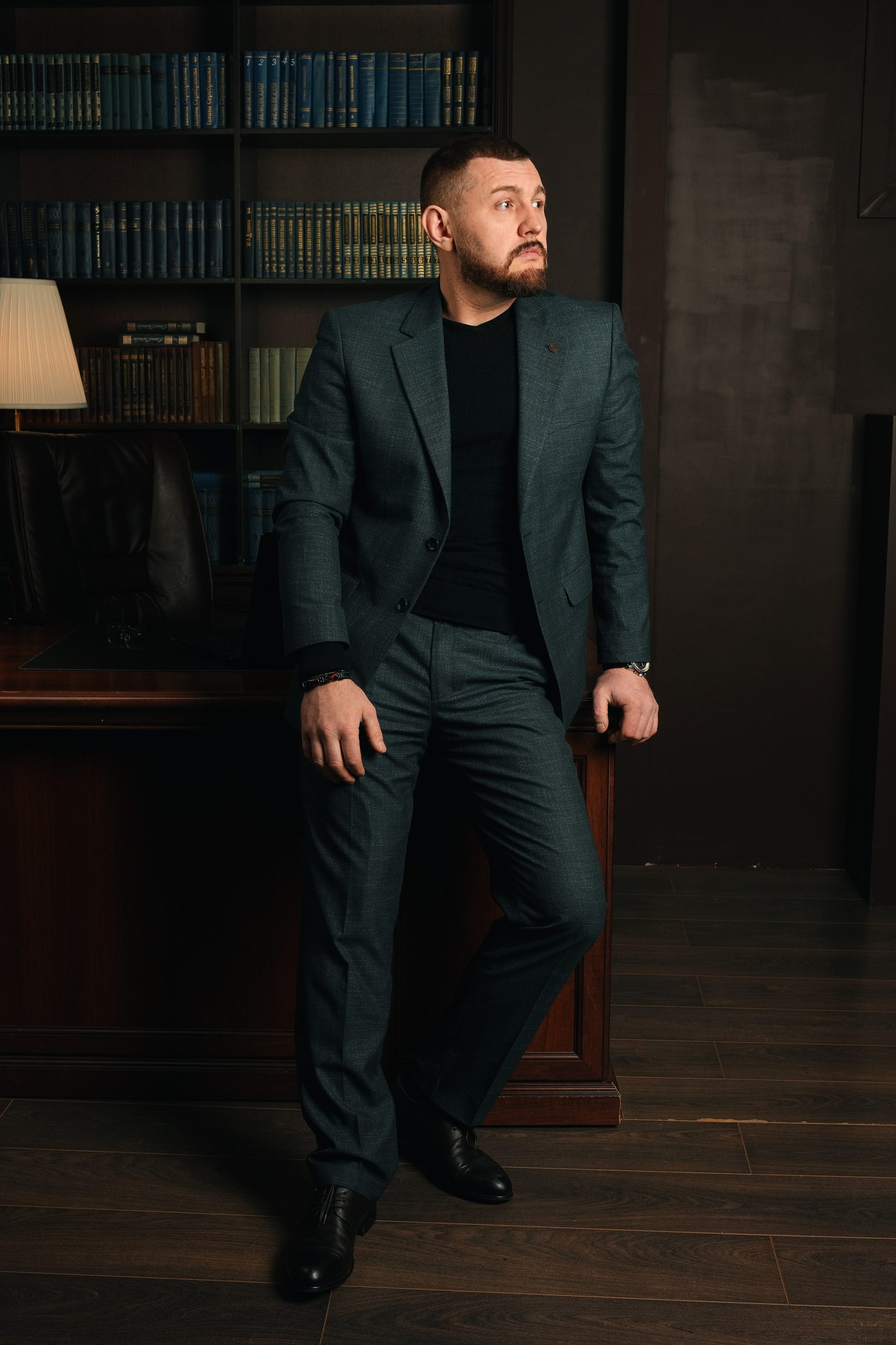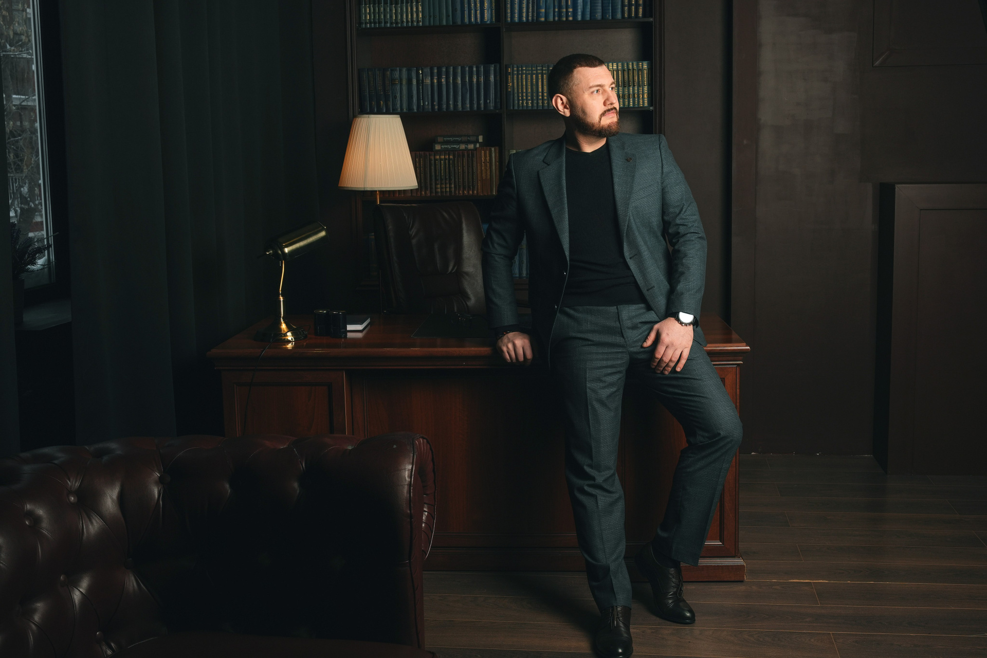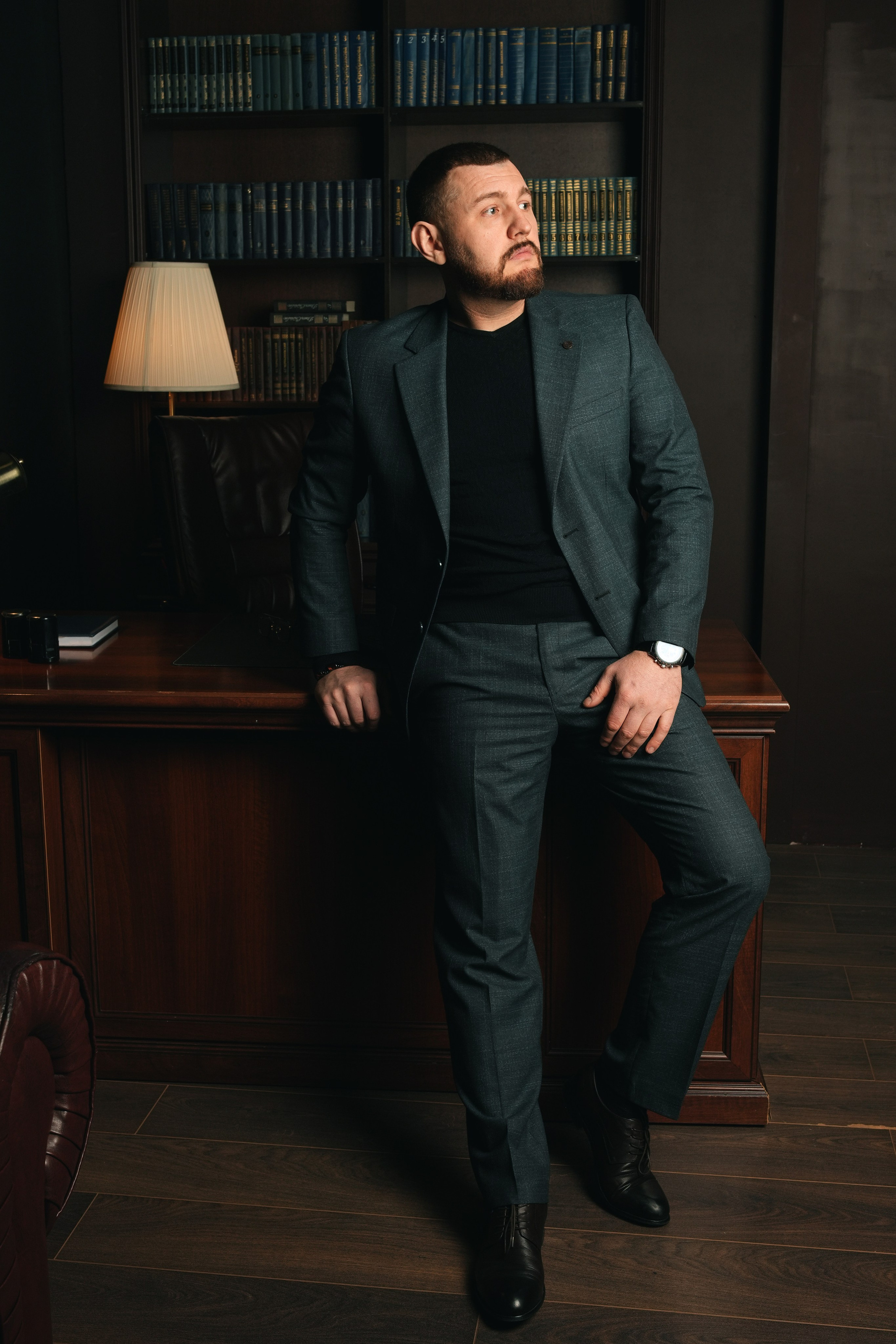 Я создаю комфортную атмосферу и управляю процессом. Мы делаем разные ракурсы: классический портрет у рабочего стола, динамичные кадры в интерьере, уверенные позы на нейтральном фоне. Работаем до получения гарантированного результата.