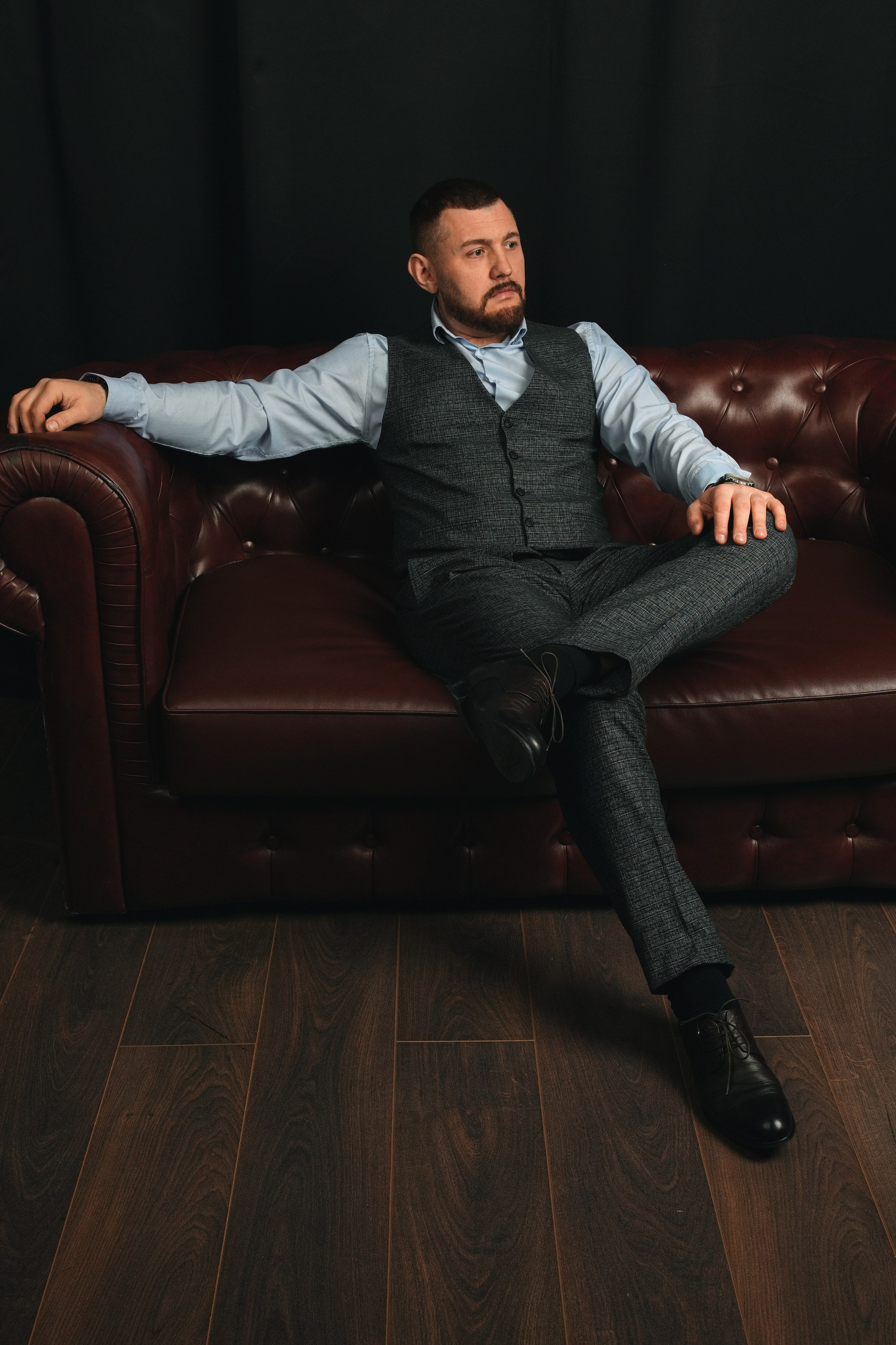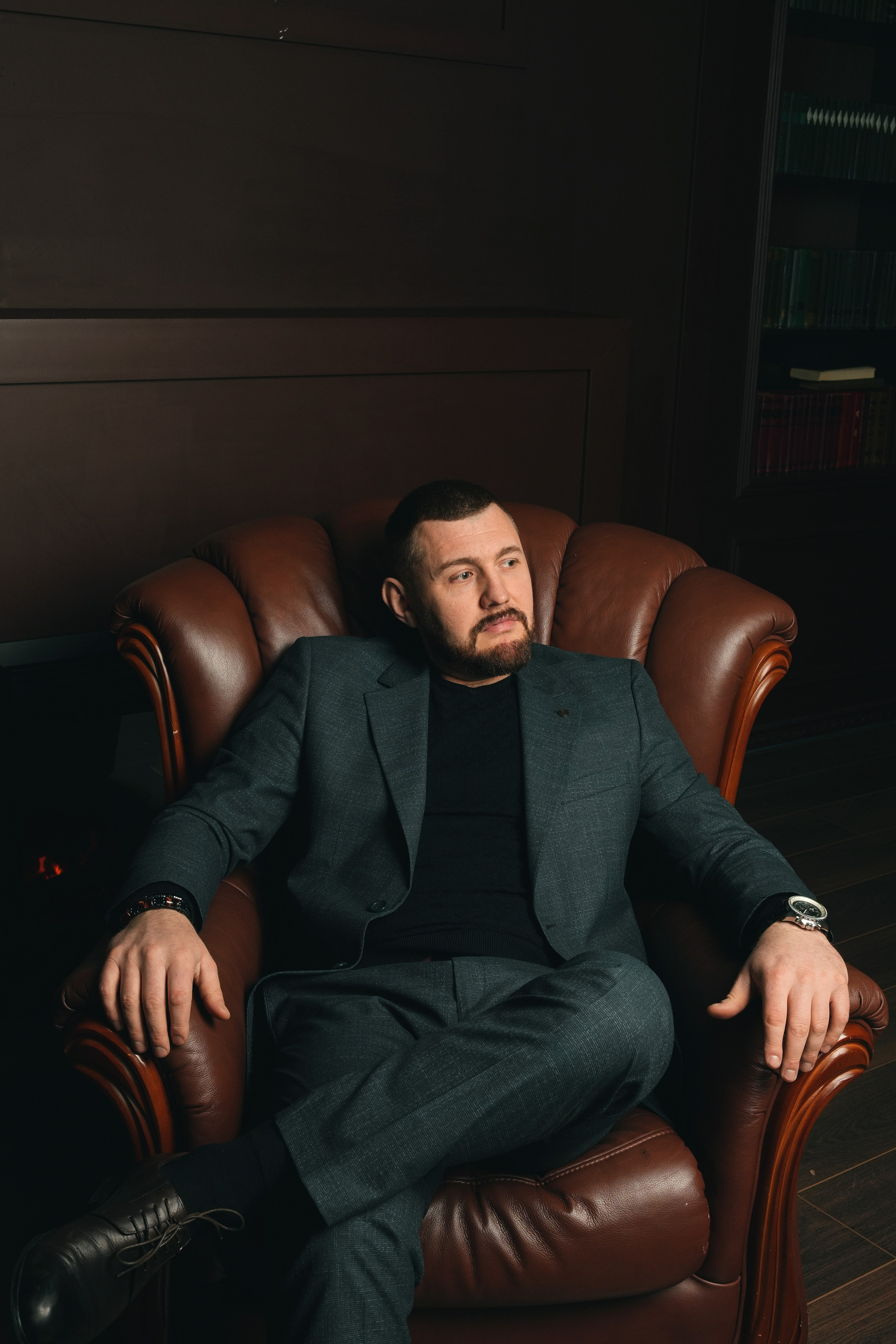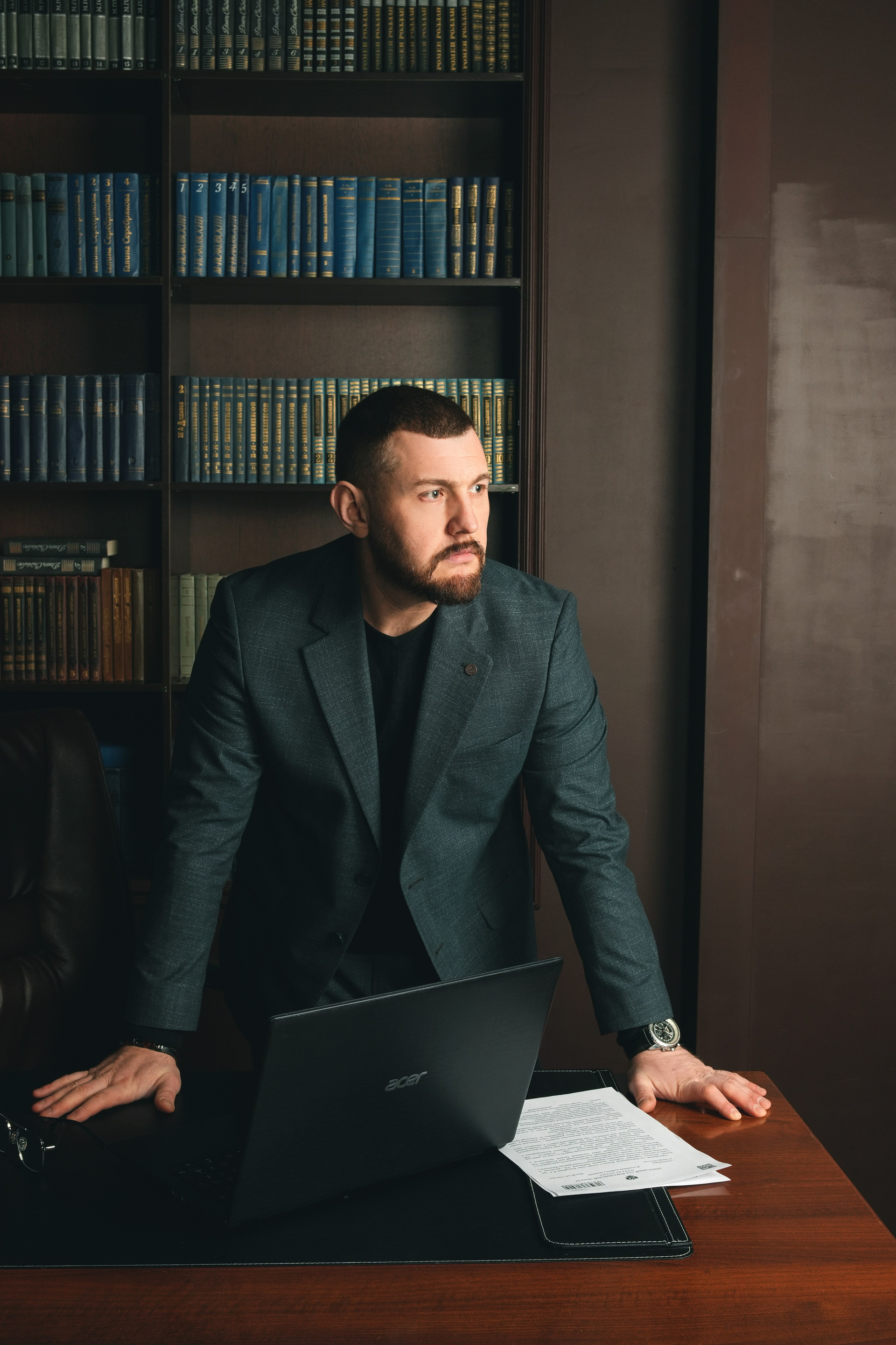 Я создаю комфортную атмосферу и управляю процессом. Мы делаем разные ракурсы: классический портрет у рабочего стола, динамичные кадры в интерьере, уверенные позы на нейтральном фоне. Работаем до получения гарантированного результата.